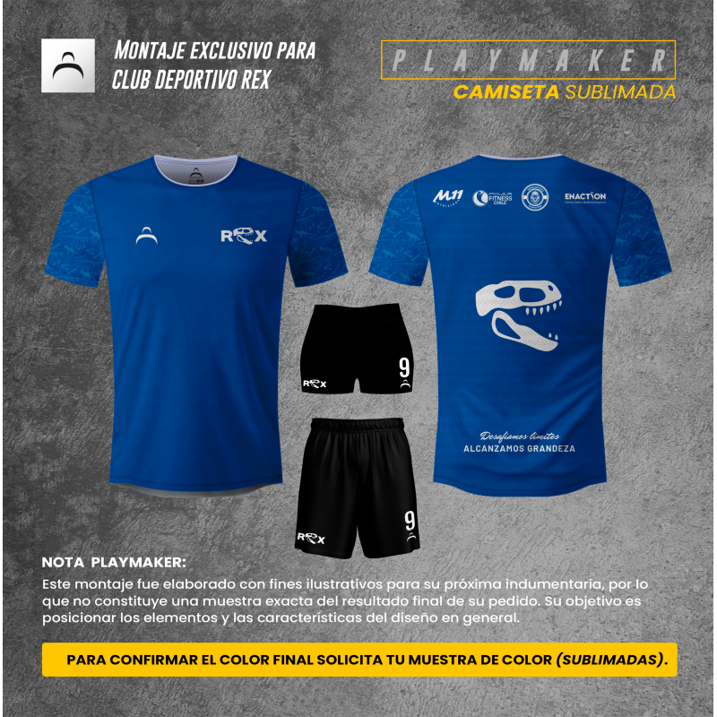 Camiseta con diseño sublimado, telas con tecnología de secado rápido y espalda con microperforaciones para mejor respirabilidad. + short para kit masculino o calza para femenino con escudo y número.